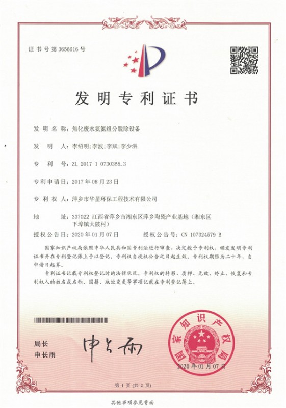 • 發(fā)明專利——焦化廢水氨氮組分脫除設(shè)備
